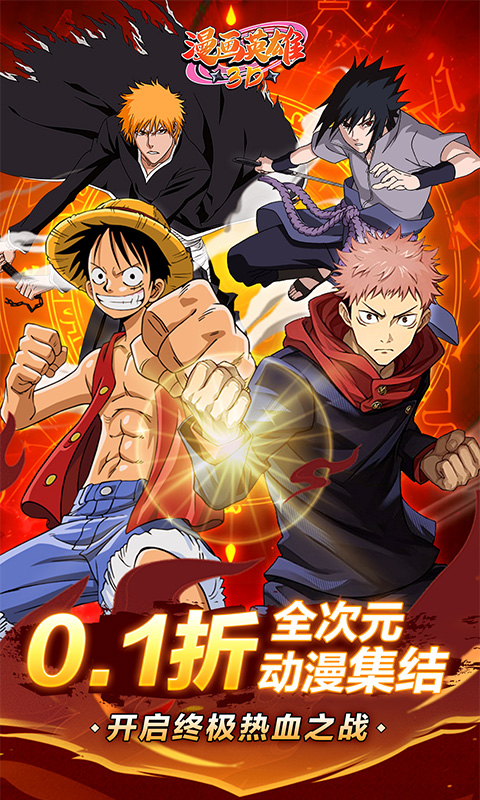 《漫画英雄3D》是一款颠覆传统的横版卡牌手游,集结《海贼王》《鬼灭之刃》《火影忍者》《进击的巨人》《死神》等超多顶流动漫的经典角色,打破次元壁垒,打造史诗级跨作品联动战场!在这里,路飞与佐助并肩作战,炭治郎携手祢豆子对抗巨人,黑崎一护与五条悟展开灵力对决……所有不可能的梦幻组合,皆由你亲手缔造!